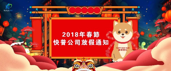 2018年春節(jié)來臨之際,依據(jù)《國務(wù)院辦公廳關(guān)于2018年部分節(jié)假日安排的通知》以及公司福利制度,現(xiàn)將快普公司2018年春節(jié)放假時間公布,我們將合理安排相關(guān)的準備工作、值班事宜,請廣大客戶及合作伙伴知悉!