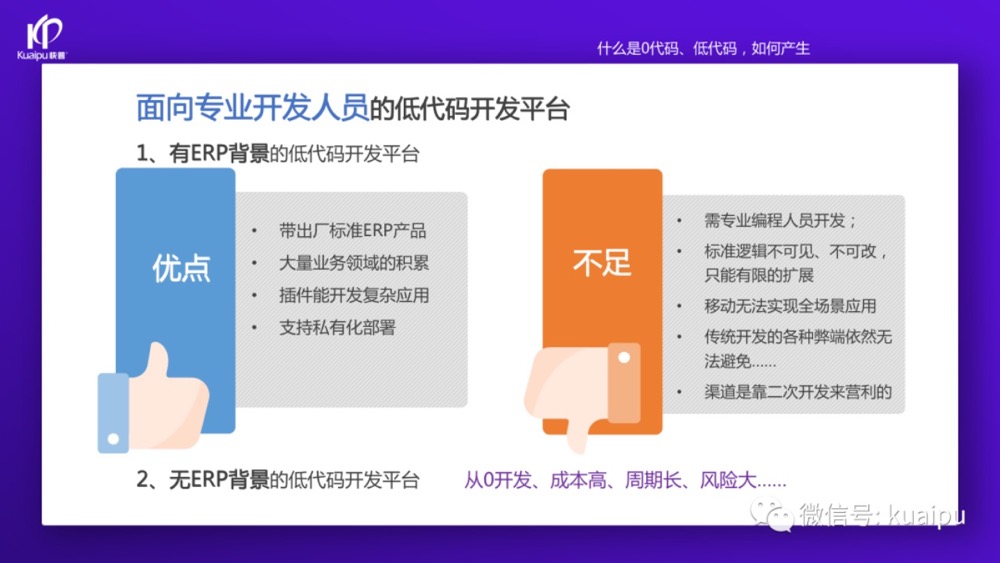 “這兩年快普已經(jīng)成功轉(zhuǎn)型為數(shù)字化平臺(tái)服務(wù)商,為客戶提供開發(fā)平臺(tái)和解決方案(產(chǎn)品)等服務(wù)。我們先從開發(fā)平臺(tái)說起,目前市場(chǎng)上的零代碼、低代碼平臺(tái)大致可以分為這幾類: